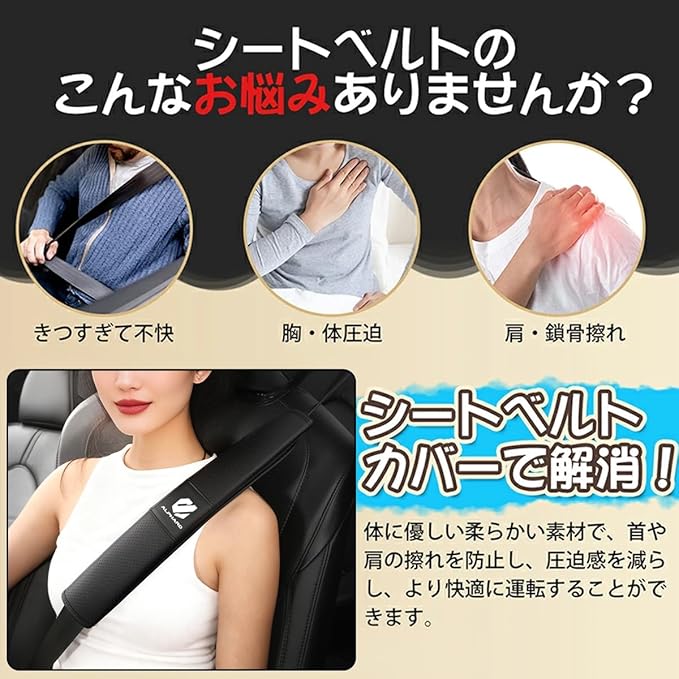 【機能】長距離運転の完璧な選択で、旅の疲れを軽減するのに役立ちます。このシートベルトクッション は、緩衝材を用いてシートベルトの圧力を低減する。これにより、運転中にシートベルトが首、鎖骨、肩に衝突することによる痛みや擦り傷を減らすことができます。ベルトが服をこするのを防ぎ、大切な服を守ることもできます。