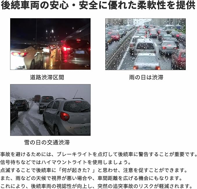 機能説明 :ブレーキを踏む(踏み続ける)、素早く3回連続で点滅します、次にライトをゆっくりと3回点滅させます、ついにブレーキランプが点灯したままになりました。