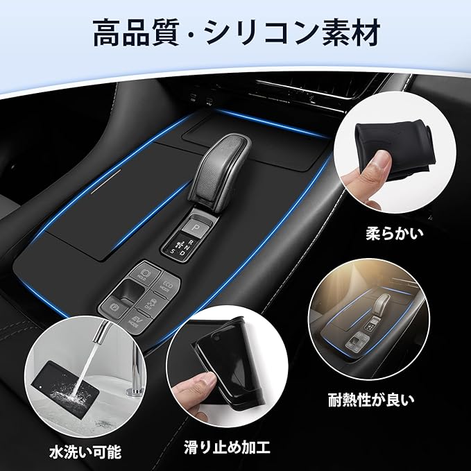 4.【セット内容&素材】:40アルファード/ヴェルファイアシフトパネル本体*1。無毒・無臭のシリコーン素材を採用し、耐摩擦性と耐熱性に優れ、高温の環境でも変形しません。さらに、カタカタ音も無く、運転中の振動による転回やズレを防止します。