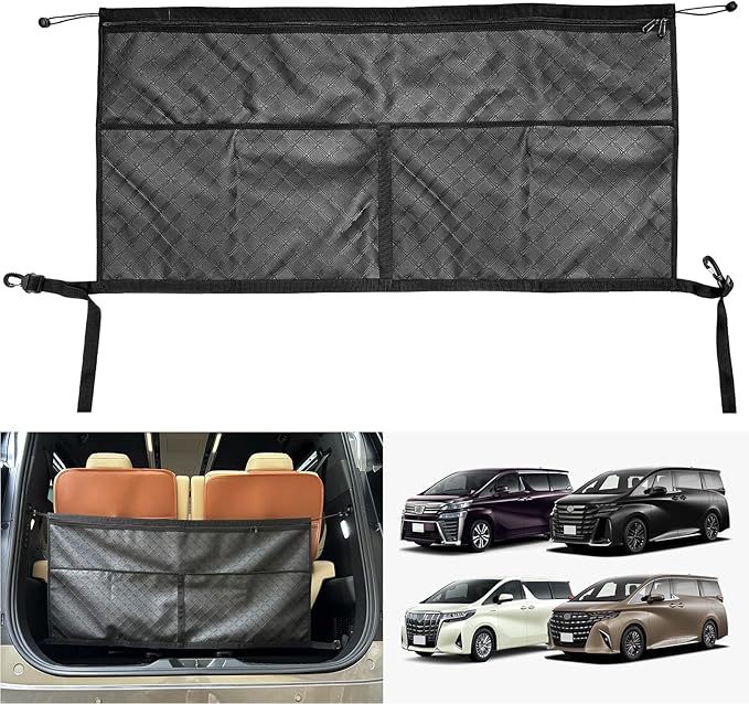 【適合車種】アルファード/ヴェルファイア40系、2023年(令和5年)6月~、アルファード/ヴェルファイア30系、2015年(平成27年)1月~。カラー:ブラック。素材:PVCレザー、オックスフォードクロス。※ラゲッジの左右にフックがない場合には適合できません。ご購入の前に、まずフックの有無をご確認ください。