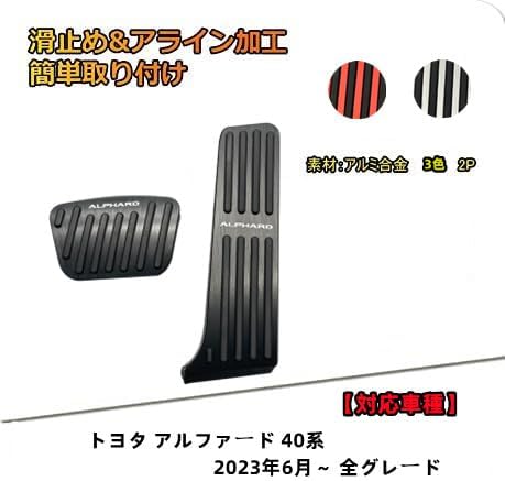 MEKOMEKO 適合 アルファード 40系 専用 ペダルカバー ブレーキアクセルカバー 安全運転 取付説明書付き ぴたっり装着 内装パーツ アルミ合金アルミ合金とゴム製 2PCS Alphard 40系 2023年6月~【ブラック】40-JTB