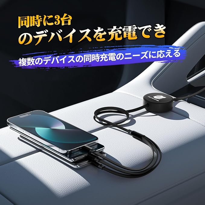 アルファード ALPHARD カー 3-in-1充電ケーブル データケーブル 充電ケーブル 伸縮ャージャー 対応 Alphard 40系 30系 20系 USB&Type-C デュアルインターフェース 対応Android/iPhone/iPad/Type-C データ伝送