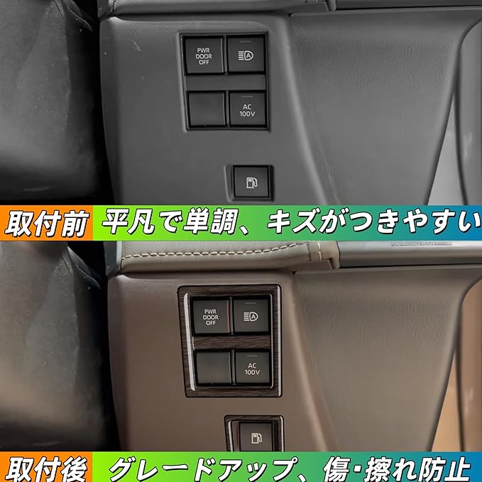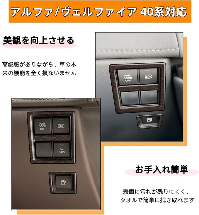 新型アルファード/ヴェルファイア 40系に対応 アクセサリー 運転席増設ドアスイッチキット スイッチパネルカバー フユーエルオープンスイッチフレーム 専用 グッズ 内装パーツ(木目調)