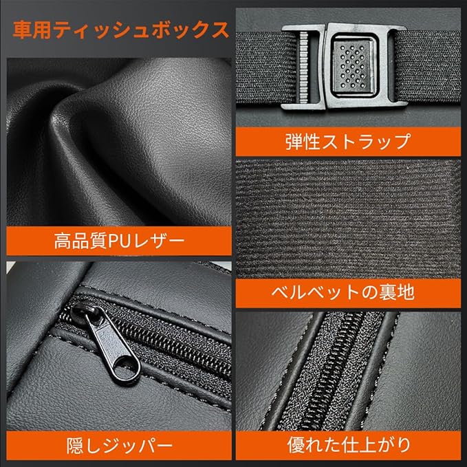 【取り付け簡単】弊社の車用ティッシュホルダーはバックルのデザインを使います.サンバイザー、アームレストボックスなど、どこまでもお好きな場所に取り付けできるのは最大の利点です.二層構造により、簡単で剝げ落ちることがなく、長さを自由に調整可能、運転中でもしっかりと固定できます.その上、二層構造はベルトの寿命を大幅に延ばし、買い替えや購入の手間が省け、ワンステップで済むと言えます.