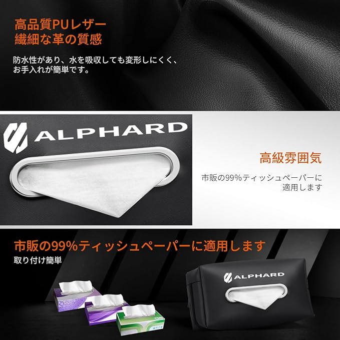 【専用設計】新型アルファード 40系/30系/20系 全シリーズ専用に設計された車用ティッシュケースです.新型アルファードに専用の車用ティッシュホルダーです.弊社の車用ティッシュケースは全車種に適用します.全車種適用の車用ティッシュケースです.