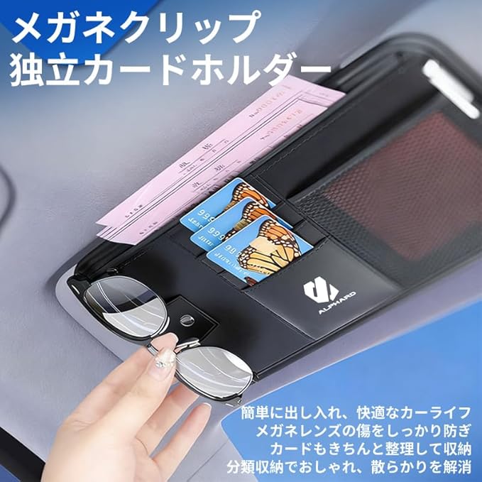 アルファード 専用 車 バイザー サンバイザー 収納 大容量 サングラスホルダー ALPHARD 新型 アルファード 30系 40系 20系 に適用 カスタム 内装 パーツ カスタム カー用品 便利グッズ 車内 収納 スリム型 サンバイザーポケット サングラスホルダー カードホルダー 安全運転 カードホルダー 小物入れ アクセサリー (ブラック 1個)
