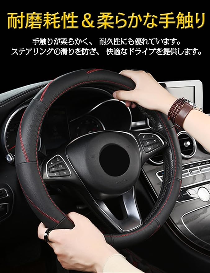 【滑り止め】このステアリングカバー はメッシュの滑り止め付きインナーリムは、ステアリングホイールにぴったりとフィットし、ハンドルカバーのオフセット防止。手触りとグリップが向上。また、滑り止め機能や優れた操作感により、長時間の運転でも疲れることなく安全に操作することができる。