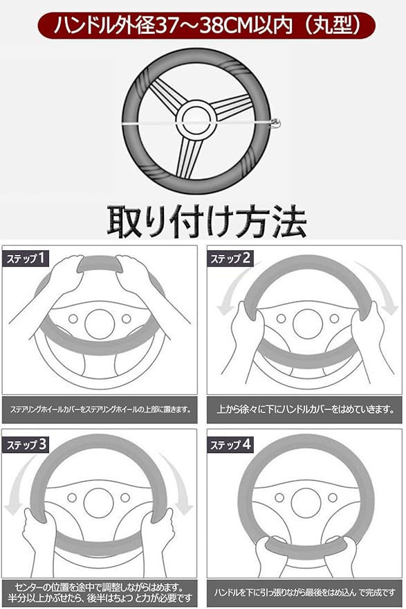 【適用サイズ】外直径37~38cmハンドル用ハンドルカバー、形状为円形(通常丸型)、ご購入前にハンドルバーのサイズと形状をご確認ください。軽自動車、普通車、バン、小型トラック用ステアリングホイールカバー。