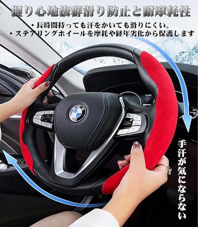 ハンドルカバー アルファード 車用 ステアリングカバー 人工スエード生地 トヨタ ALPHARD 40系30系20系に適用 汎用 軽自動車 普通車 取付簡単 吸汗性 耐摩耗性 汚れ防止 滑り止め オールシーズン対応 内装パーツ 車用品 アクセサリー (レッド, アルファードに適用)