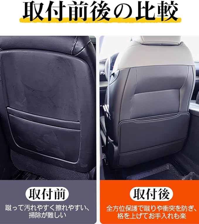【ご愛車をしっかり保護】このシートバックプロテクターは車種別専用設計キックガード・ドアプロテクターです。ピッタリ装着、安心して長期お使いいただける、気付くと付いてるキズや汚れをしっかりガード!車内をまもってクールなキックガードです。いつもの車内を、もっと優れたスペースにする。