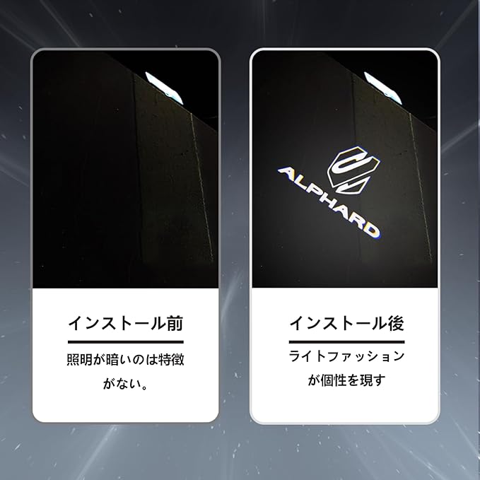 【対応車種】 ①トヨタ アルファード(ALPHARD)30 系:型式 AYH/GGH/AGH30・35W、年式 H27.1~;②トヨタ アルファード(ALPHARD)40 系:型式 AGH4#W/AAHH4#W、年式 2023 年 6 月~現行;※セット内容:カーテシランプ 2 個、取付工具 1 個