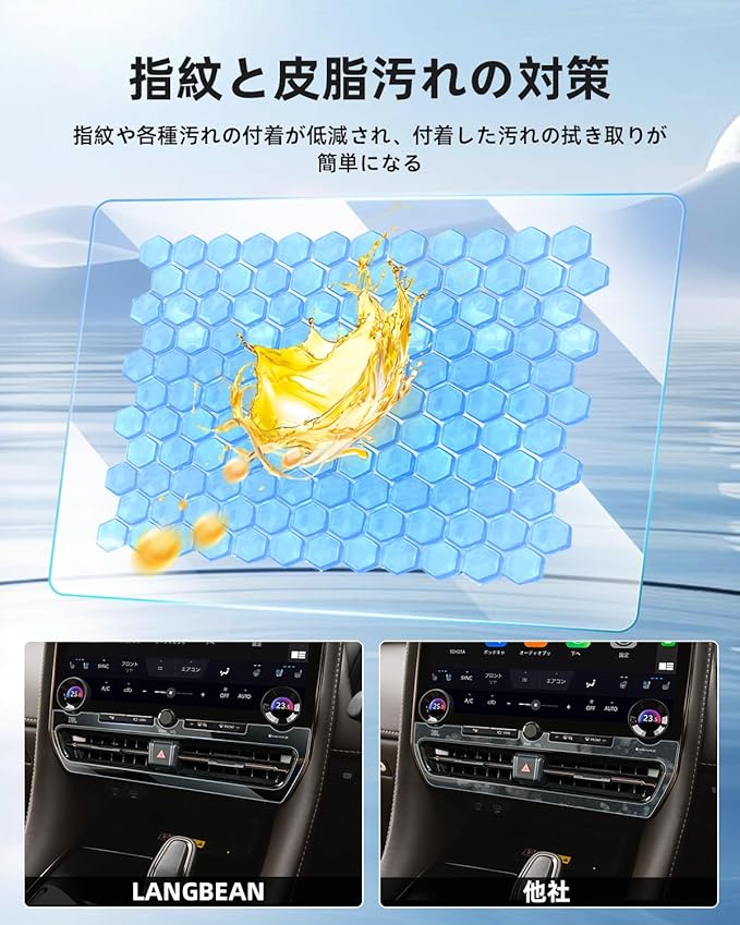 【指紋や汚れを軽減】 表面は防水・撥油・防汚加工が施されており、指紋や汚れが付きにくくなっています。 日常生活でカーナビゲーションを使用する際、画面に指紋や汚れが付いても、湿らせたペーパータオルで拭き取るだけでOK。