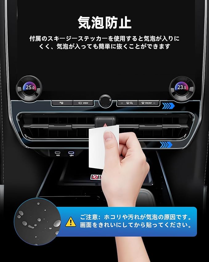 【貼り付けが簡単】アルファード40系 保護フィルムは、説明書と固定用シールがセットになったキットが付属していますので、初心者の方でも簡単に貼り付けることができます。 ホコリや汚れがあると気泡が入ることがあります。 貼る時に空気が入っても少し剥がし貼り直せば大丈夫です。後は綺麗になっています。