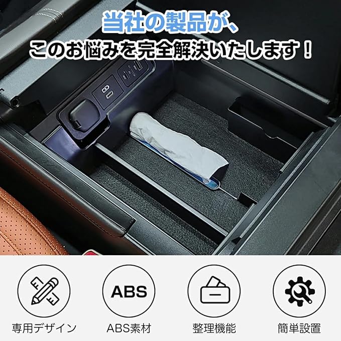 【耐久性に優れたABS素材】本体には高品質ABS樹脂を採用。防塵・防キズ設計で、長期間使用しても劣化しにくく、日常使いに最適。内部は滑り止め加工が施され、小物が動いた際のカタカタ音を軽減し、より静かな車内空間を保ちます。