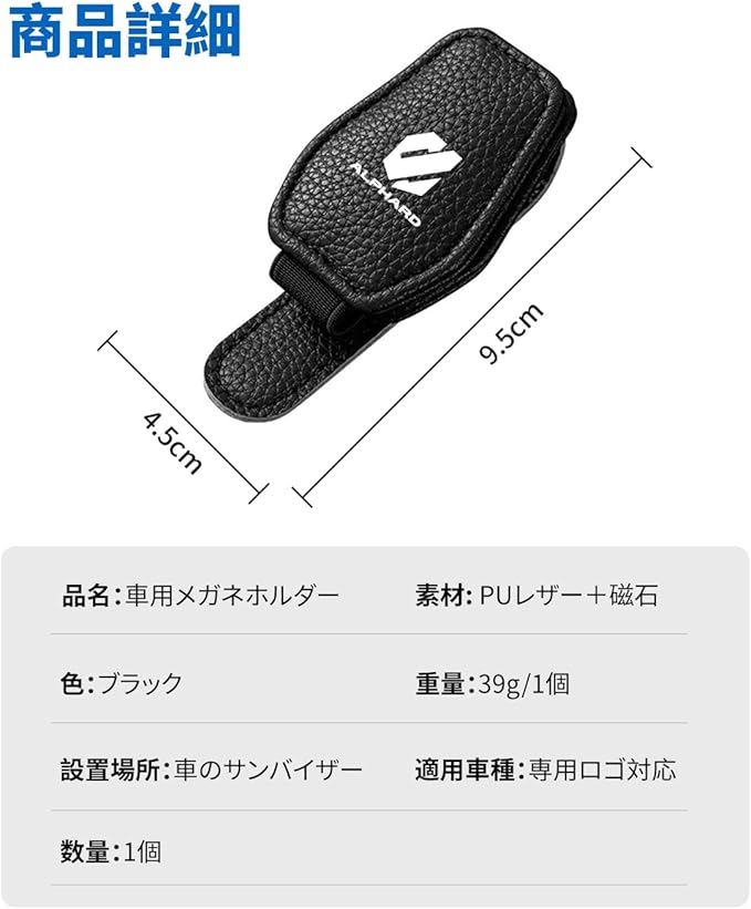 アルファード 適用 車用 サングラスホルダー 片手使用 ALPHARD 専用ロゴ 車 メガネホルダー アルファード 20系 30系 40系 適用 眼鏡クリップ コンパクト 取付簡単 安全運転 バイザーに装着 レザー製 眼鏡を保護 車内 カー用品(ブラック,アルファード 専用)