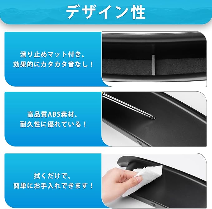 2.【収納力アップ】:駐車券やスマホ、ガム、カード、鍵などちょっとしたものを置くことができ、収納スペースが増やせる。