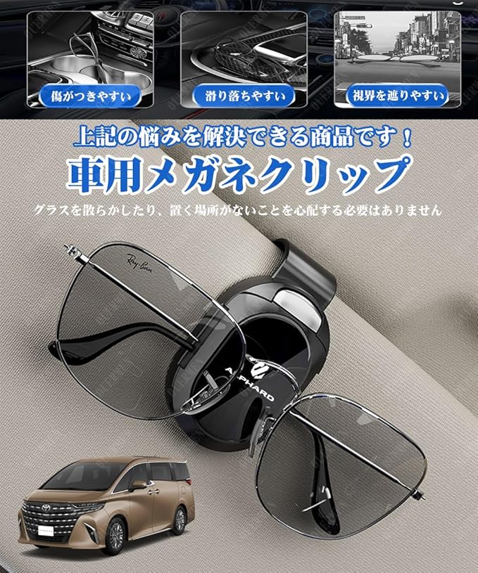 メガネホルダー車用 トヨタ ALPHARD アルファード AGH40W AGH45W 40系(2023年6月~) 30系 20系サングラス クリップに適用 車用 収納 眼鏡ホルダー 取り付け簡単 1個 ブラック
