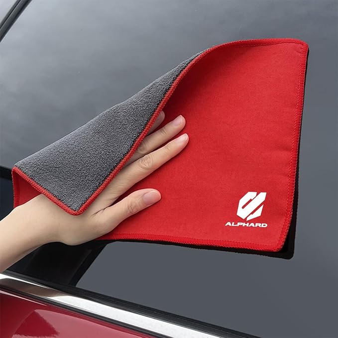 【洗車グッズ・タオル 2個】タオルサイズ:30x30cm レッドとグレー。両面異なる生地で様々な用途に使えるタオルは洗車の必需品です。