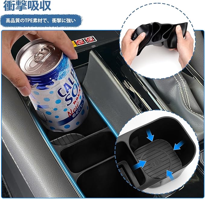 3.【キズ防止 衝撃吸収】:耐摩耗TPE素材で作られており、純正なカップホルダーをキズから守ることでき、運転中にカタカタ音防止、より快適な運転体験を提供する。