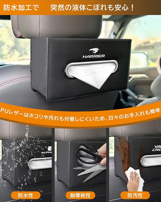 車 ティッシュケース 吊り下げ ALPHARD【新型 アルファード対応 40系/30系/20系】PUレザー 折りたたみ おしゃれ アクセサリー 装飾 大容量 コンパクト 車用ティッシュカバー 車内 小物 防水 取り付け簡単 片手操作 ブラウン