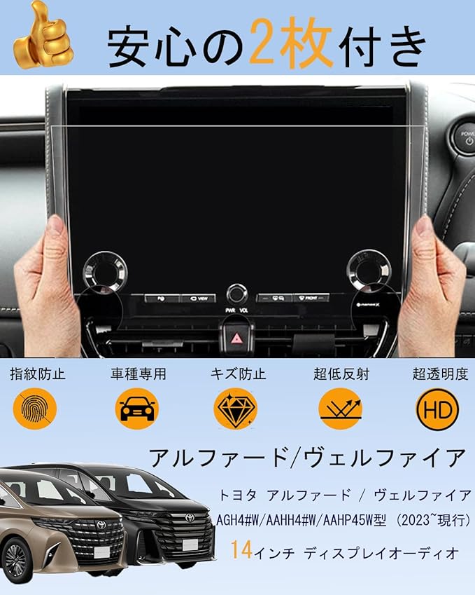 【2026年最新・2枚入り】oricarmes 40アルファード 40ヴェルファイア 保護フィルム 14インチ ディスプレイオーディオ 汚れ防止 貼付簡単 アルファード40系 アクセサリー ヴェルファイア40系アクセサリー