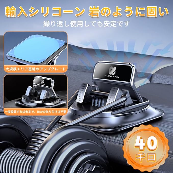 【2025推奨&昇級版】車載スマホホルダー【新型アルファード 40系/30系/20系 全シリーズ適用】専用ロゴ スマホスタンド 車 置き型 360 回転可能 角度調整 直射日光を避ける 滑り止め 安定性強化 再利用可能 カー用品 ダッシュボード/卓上など適用 i-Phone・Android 各種スマートフォン 全車種対応 SYAKAORI(アルファード)