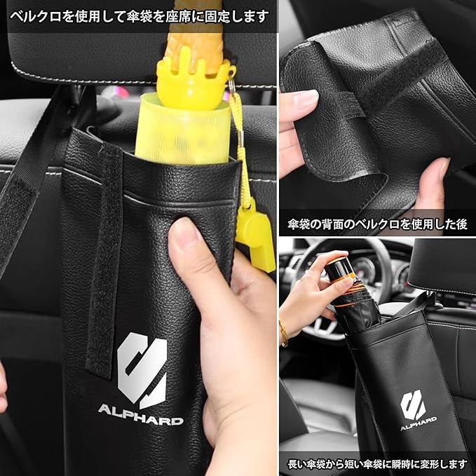 アルファード 車内収納用品 車傘収納 傘ホルダー シートバック 傘袋、Alphard 新型 アルファード 40系 30系 20系 専用 アクセサリー パーツ 便利な車用品 折り畳み傘 長傘 両用傘カバー 傘入れ レザー 専用ロゴ 1PC 全車種に適合