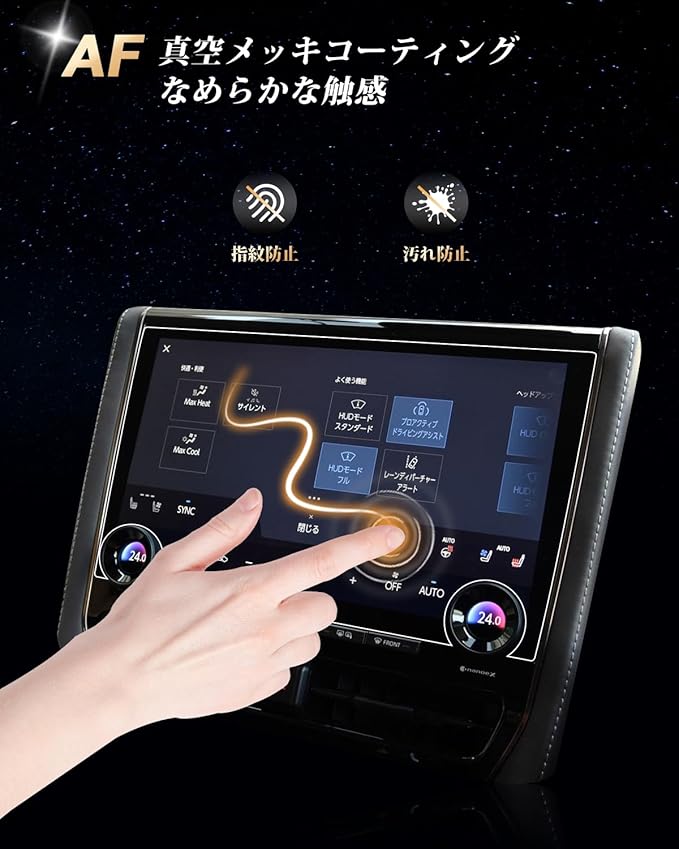 【AFコーティングで指紋汚れを大幅カット】 日常使用で指汗や皮脂が画面に付着することは避けられないでしょう。AFコーティングによりECOZEN 40系アルファード 液晶保護フィルムは、防油・防汚効果を発揮し、いつも滑らかで清潔な画面をキープできます。ただマイクロファイバークロスで軽く拭いで、新品のような輝きを取り戻られます。