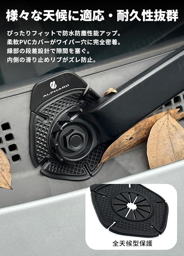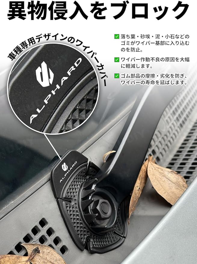 HUDIY(フーディ)アルファード 40系 専用 ワイパーホール カバー ALPHARD ロゴ付き ワイパーホール プロテクター 落ち葉防止 ワイパーカバー 車 保護カバー 優れた耐久性 防水防塵 UV対策 柔軟PVC製 2.25mm厚 耐摩耗性 耐久性 すべり止め付 雨仕様 耐久性抜群 カー用品 2個セット