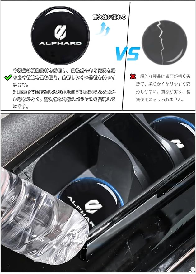 アルファード 40 系 専用 車載シリコンコースター レジンコーティング 銀色ロゴ ブラック 直径 68mm 厚さ 4mm スリム 滑り止め 撥水 防塵 超耐久 カーアクセサリー ギフトペア(2 個セット)