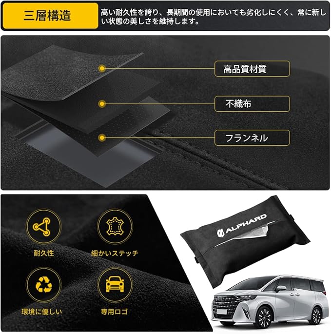 【専用設計】新型アルファード 40系/30系/20系 全シリーズ専用に設計された車用ティッシュケースです.新型アルファードに専用の車用ティッシュホルダーです.