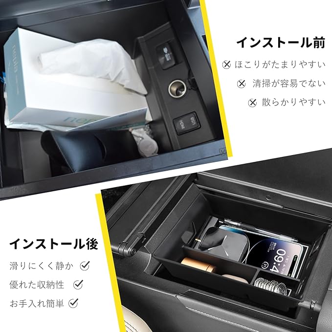 【収納性・便利】車内スペース活用、ノーマルの無駄な広い空間をトレーを使う事によって機能性と収納性が飛躍的に上がりへの転換しましょう!!滑り止め加工済みラバーマット、防塵、防キズ、小物が動いた際のカタカタ異音を減少します