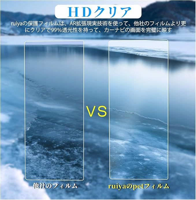 【HDクリア・極薄・高感度タッチ】AR拡張現実技術を使って、更にクリアで99%透光性を持って、0.125MM極薄、保護フィルムの装着を忘れてしまうの薄さでナビの画像を完璧に映す。スムーズな操作体験は本体の手触りをそのままに感じできるほどの高感度タッチ。