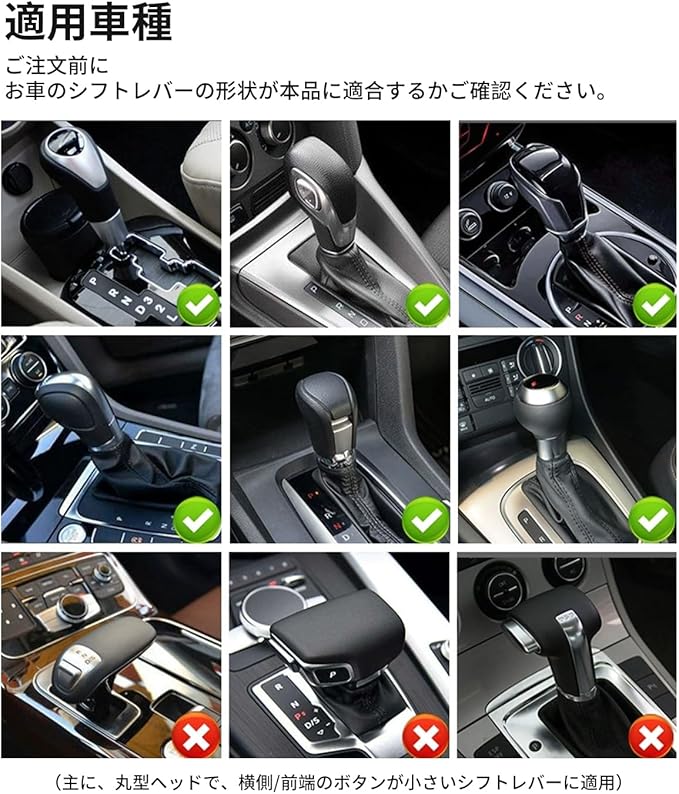 ✨【広範な互換性】丸型ヘッドのオートマチック車(AT)およびマニュアル車(MT)のシフトレバーにご使用いただけます。運転操作を妨げず、握った時の違和感もありません。フードの着脱が自由なので、お好みのスタイルをお選びいただけます。ノブの直径約2.5~3インチ(約6.4~7.6cm)、高さ5インチ(約12.7cm)以下の多くの市販シフトレバーモデルに対応しています。ご注文前に、お車のシフトレバー形状が本品の適用範囲に該当するかご確認ください。
