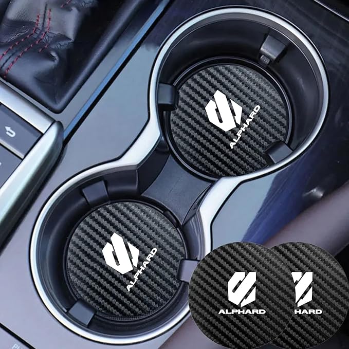 アルファード 専用 カップ マット 車 厚型 ドリンクポケットマット 両面にも炭素繊維質感 アルファード 20系 30系 40系 2枚入り 臭いなし 質感良い 車用 カップコースターを保護 滑り止め 振動防止 丸型 カーアクセサリー(アルファード 専用)