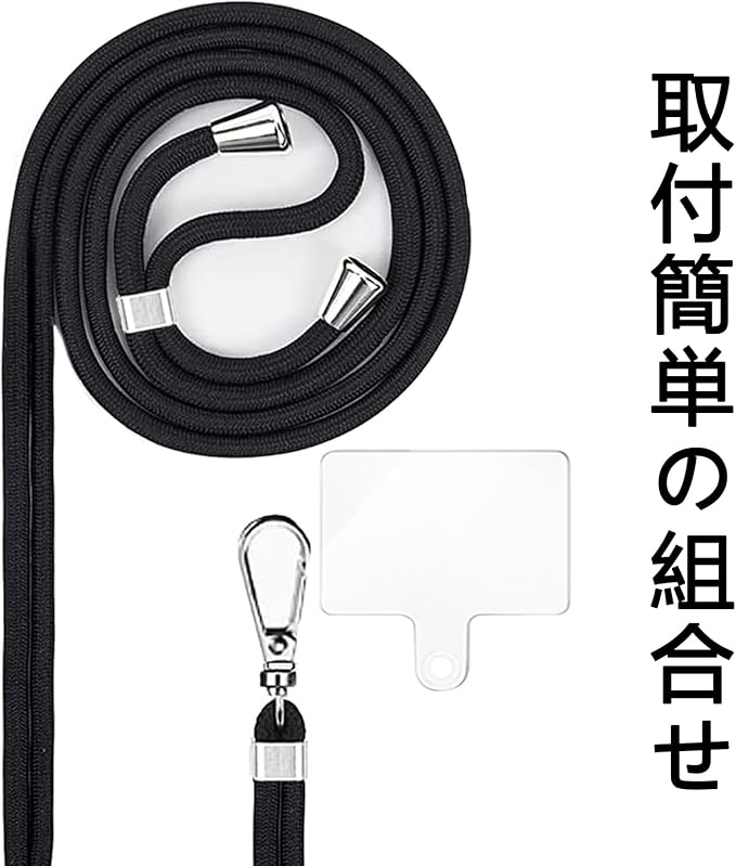 【実用性1:取付簡単の組合せ】:機種専用の透明カバー&ストラップホルダーのシート&ロングストラップというセットで3n1同梱販売のです。ホルダーシートをカバーの中に入れて、充電口からハトメを出した上に、端末をカバーに取り付けたら完成!着脱が超簡単ですよ。