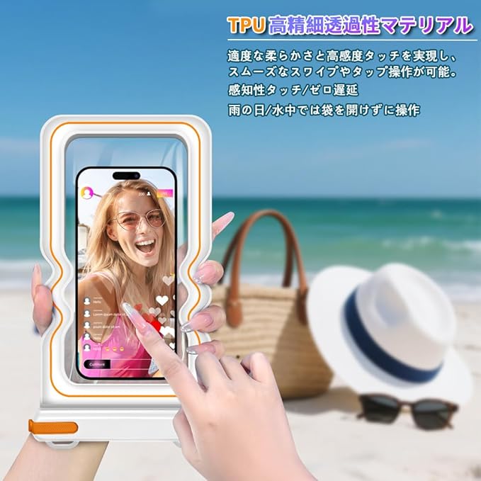 【高感度タッチ・クリアな通話】適度な柔らかさと高感度タッチを実現し、スムーズなスワイプやタップ操作が可能。ダイビング、スイミング、ラフティング、ビーチ、雨天時の通勤など、あらゆるシーンでスマートフォンをしっかり保護し、快適に使用できます。