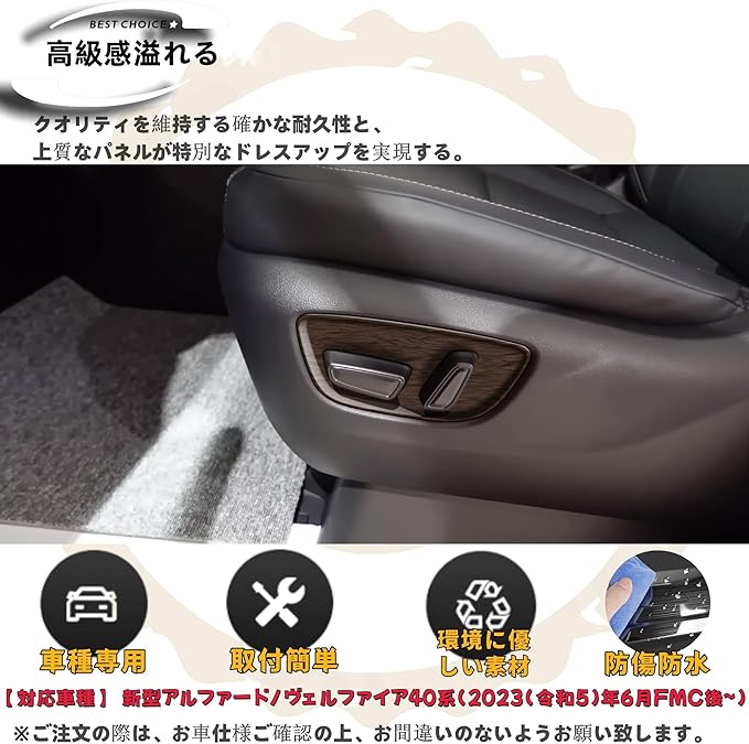適用 新型アルファード40系 ヴェルファイア 40系 カスタム アクセサリーパーツ シートスイッチパネルカバーガーニッシュ 専用車種 内装グッズ 木目調ブラウン