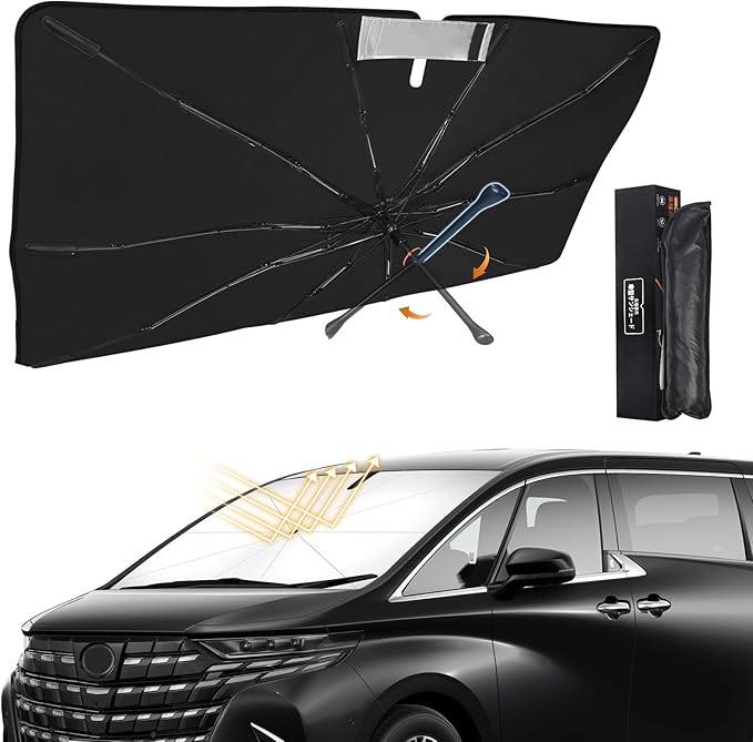 新型 アルファード ヴェルファイア 40系 専用 傘型サンシェード 車種専用設計 360 回転可能 遮光 断熱UVカット フロントガラス用 10本骨グラスファイバー ワンタッチ収納 取付簡単 収納袋付き(ALPHARD VELLFIRE 40系 2023年6月-現行対応)