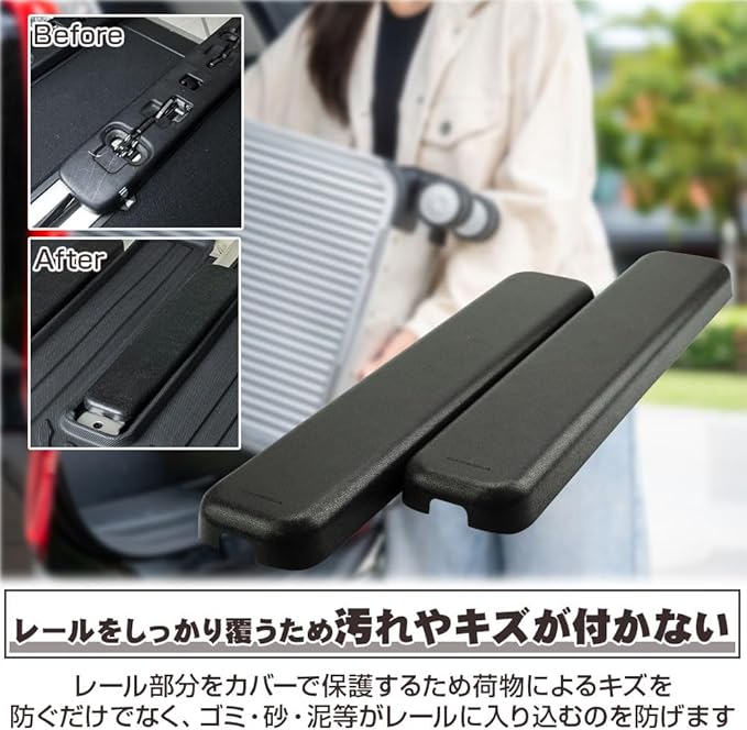 アルファード/ヴェルファイア40系を愛用している方にお勧めのシートレールカバーです。3列目のシートを格納して荷室として使うと、レールが剥き出しのままになり埃が溜まったり傷だらけになる…といったお悩みを解決します。