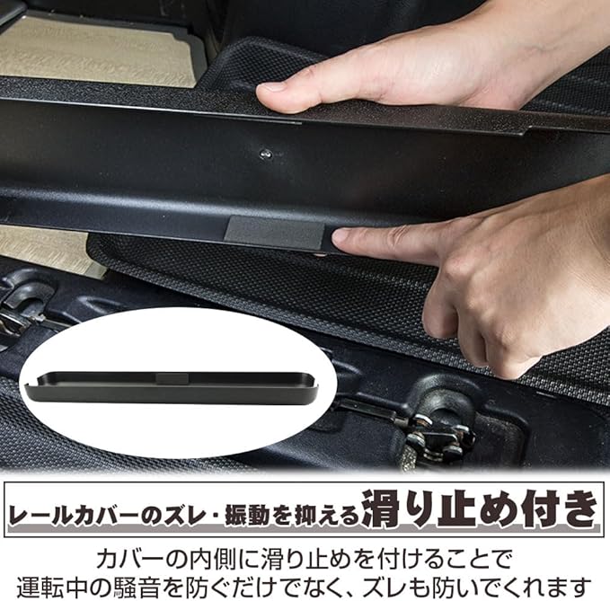 【セット内容】シートレールカバー 2点 【サイズ(約)】49cm 10cm 3.5cm 【カラー】ブラック 【材質】ABS 【適合車種】新型 アルファード40系/ヴェルファイア40系 ※ご購入前に必ず適合車種をご確認ください。