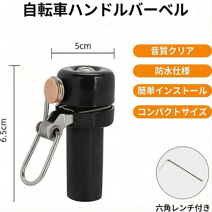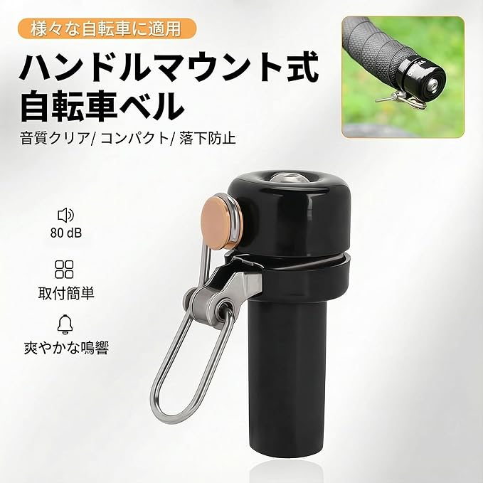 自転車 ベル ロードバイク 自転車ベル バーエンドキャップ式 隠れ式 軽量 大音量 爽やかな音色 銅合金製 防水 錆びにくい ロード グラベルロード ハンドル直径22.2mm対応