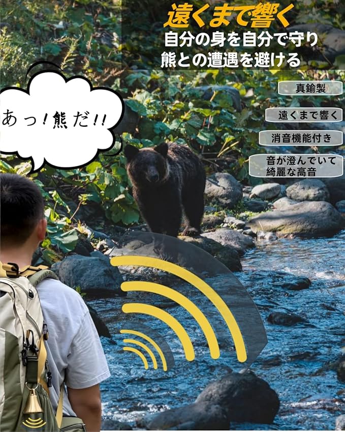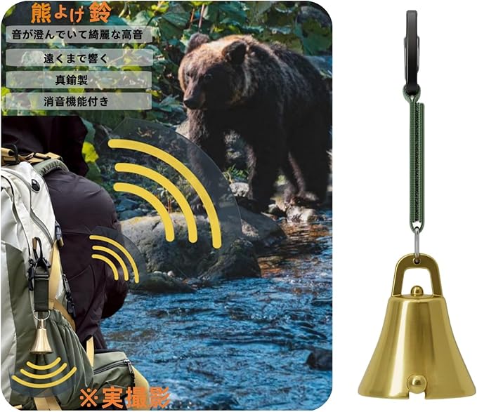 熊鈴 消音機能付き 熊よけ鈴【プロ登山家推奨】熊よけベル 大音量登山 トレッキング 山歩き 山菜取り 熊 鈴 ベル 真鍮製