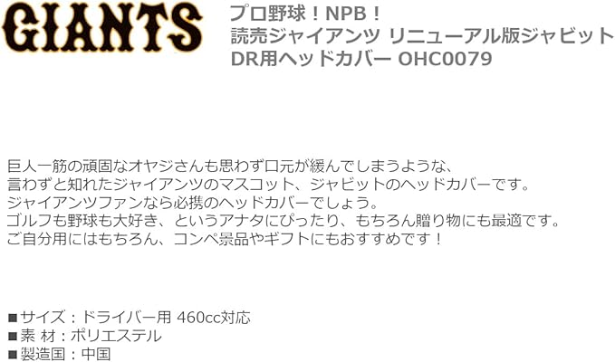 ホクシン交易(HOKUSHIN TRADING) 読売ジャイアンツ ヘッドカバー ミスタージャビット ドライバー用 460cc対応 OHC0079