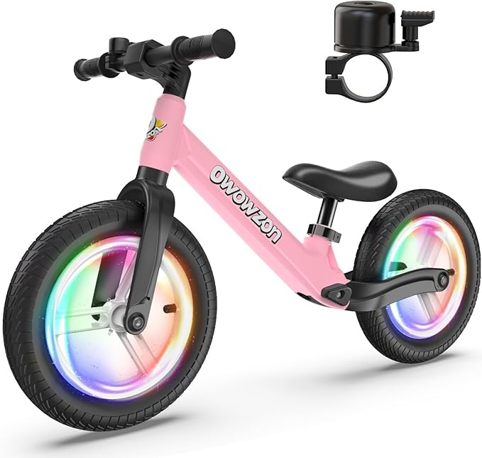 ペダルなし自転車 キッズバイク 子供用 光るゴムタイヤ ベル付き 12インチ(30.5cm) 超軽量 持ち運び便利 調整可能シート おしゃれ 乗り物 乗用玩具 おもちゃ お祝い クリスマス プレゼント 男の子 女の子 子供の日 誕生日 ES77