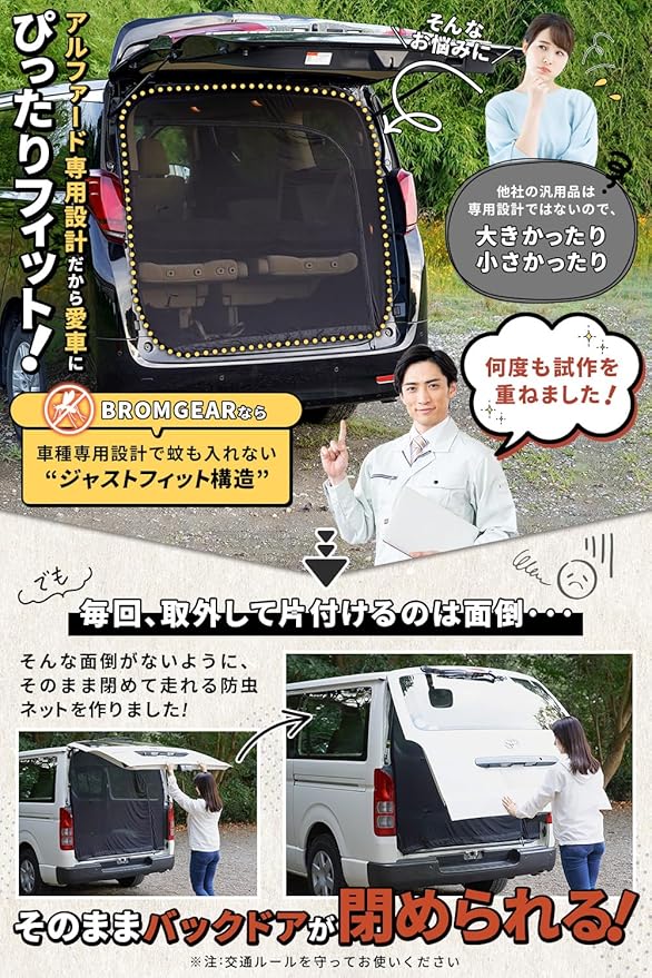 ブロムギア アルファード alphard バックドア用 防虫ネット ふるさと納税 対応 カー用品 車中泊 キャンプ リアゲート用 網戸 ファスナー アウトドア 喚起 通気 虫よけ メッシュ 黒 (アルファード)