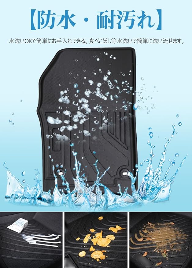 【高品質なTPE素材】このカーマットは環境に優れた素材を採用し、完全に無毒で無臭なので、車内での不快な臭いを取り除くことができます。また、耐摩擦性、耐久性、柔軟性も備えており、変形・劣化が起こりにくいです。防水仕様なので水にも強く、丸洗いができるので水や泥などを気にせず全力で遊んでいただけます。