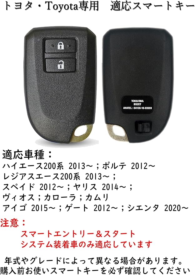 【適合車種】トヨタ専用 ハイエース(HIACE)200系(2013~) 4型 5型 6型 KDH200V/205V・TRH200V・KDH201V/206V;レジアスエース200系 REGIUSACE(2013~)/ポルテ(Porte)(2012~)/スペイド(Spade)140系 nsp140 ncp141(2012~) /Type14/ヤリス(Yaris)(2014~) Yaris L Yaris HAIs(2020)/ヴィオス(Vios)/カムリ(Camry)/カローラ(Corolla)/アイゴ(Aygo)(2015~) /ゲート(2012~)/Sienta(シエンタ)(2020~)等に適用できます。ご注意:スマートエントリー&スタートシステム装着車のみ適応しています。※年式により異なる場合がありますので、画像のキーの形状をご確認下さい。画像のキーの形であれば適合です。