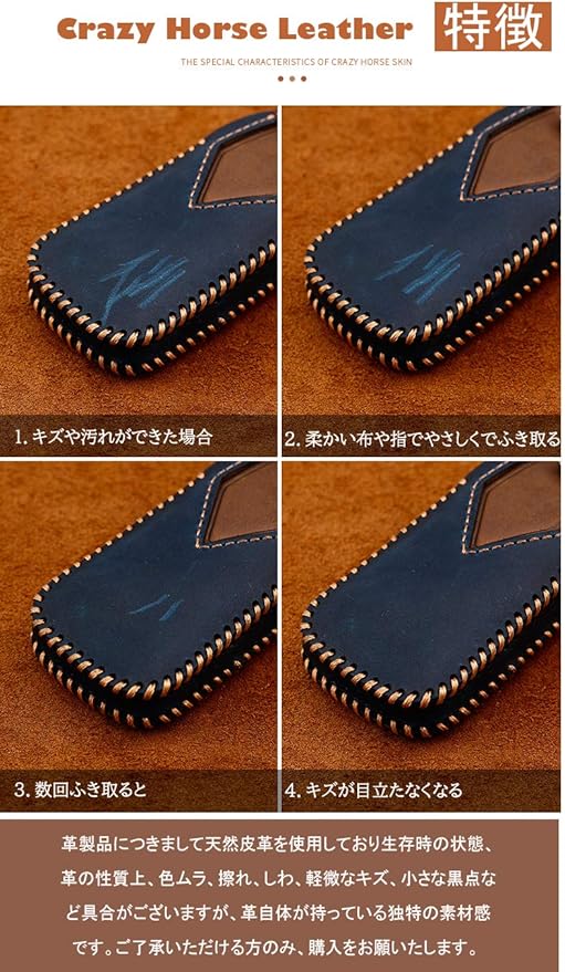 【素材】高品質のクレージホースレザーを採用します。スマートキーケースは電波遮断しない中空の設計を採用され、信号には邪魔しないので、安心的に利用できます。