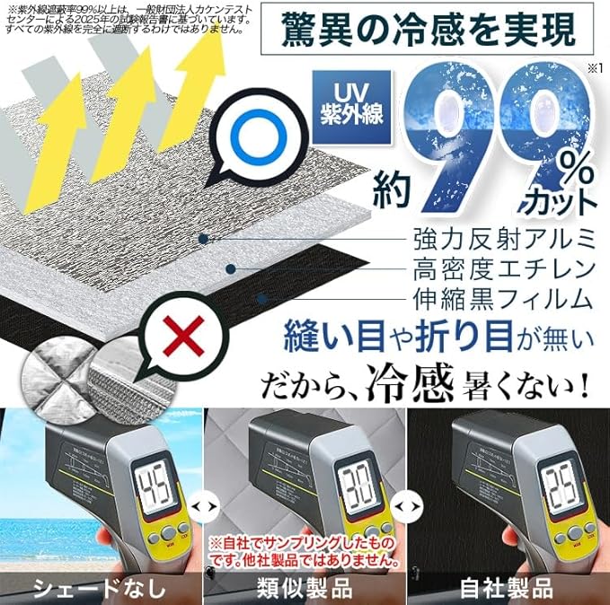 1.光りを遮断 【特殊生地で光りをカットします。エアコンも快適に使え、燃費向上効果】
